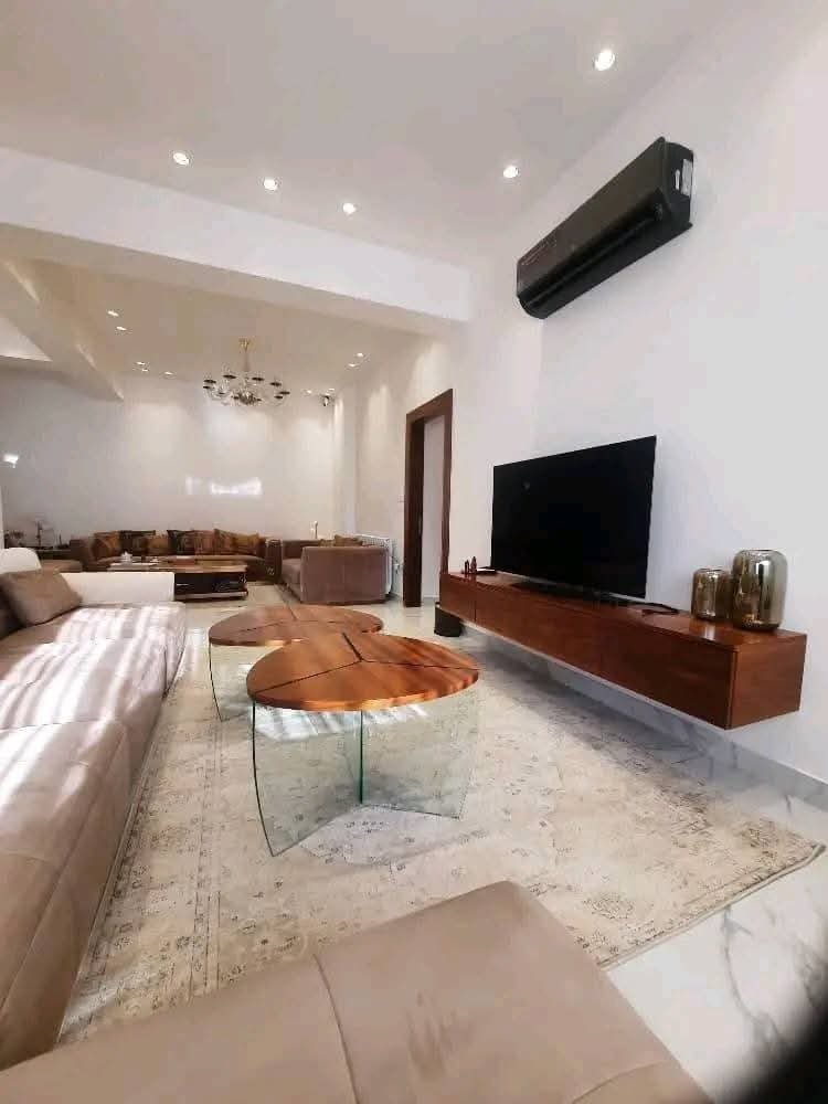 الوصف صالون واسع مؤلف من 3 فراغات مفتوحة (جلوس-ضيوف-سفرة)