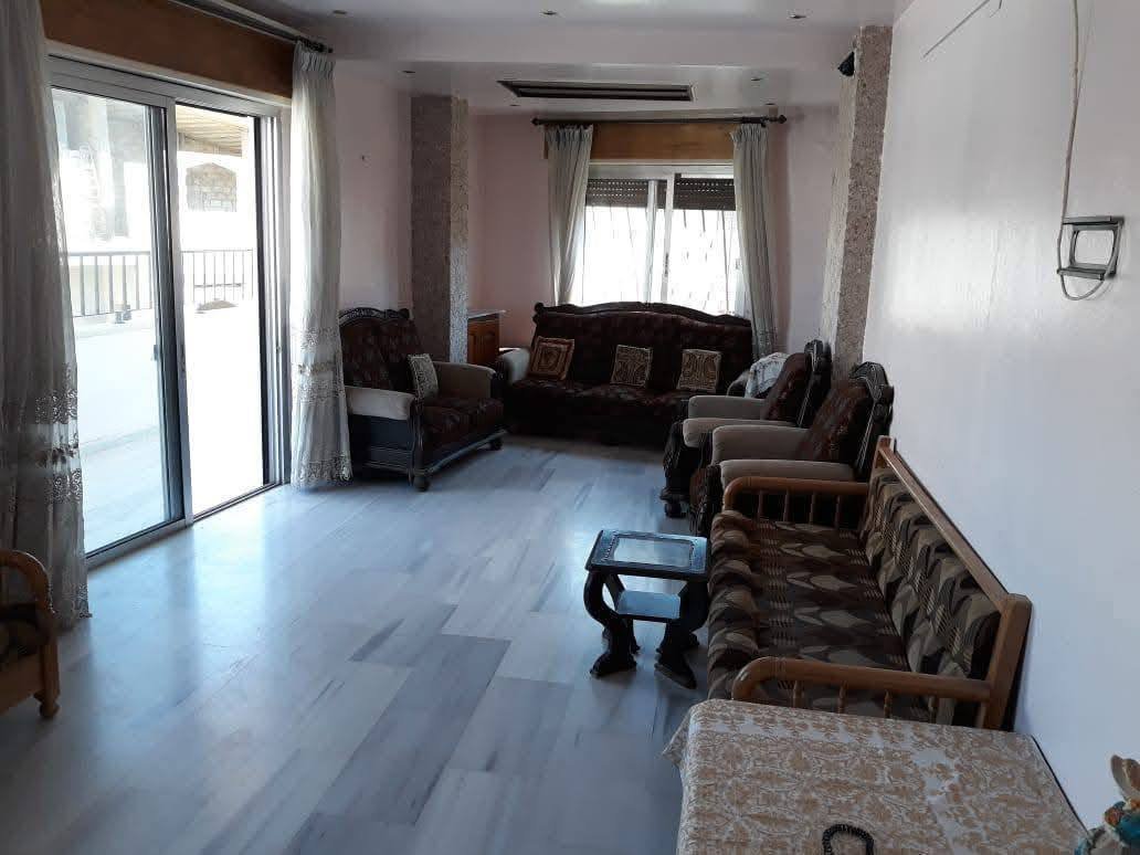 ثلاث غرف نوم وصالون كبير وحمامين وبرندة على واجهة البيت كامل وإطلالة من الخلف على حديقة الباسل ومطبخ كبير واسع اكساء حلو وأرضية رخام طبيعي ومنجور كلو سنديان فراغ وتسليم فوري الملكية قرار حكم