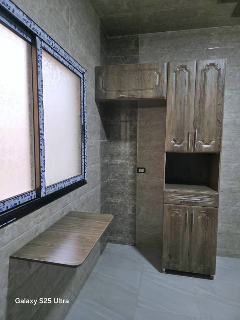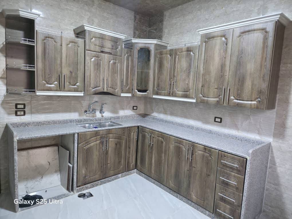 ثلاث غرف وصالون وبرندة مطبخ أميركي سوبر ماركت مع طاولة تحضير