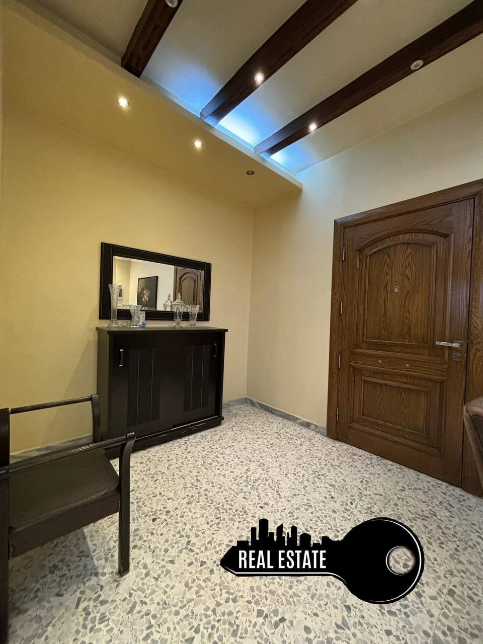 مساحة 124م طابق سادس سوكة مع مصعد 24/24 بناء برجي حجر و رشة عبارة عن غرفتين نوم وصالون واسع وغرفة سفرة ومطبخ وحمام2 وبلكون واسع (تراس)