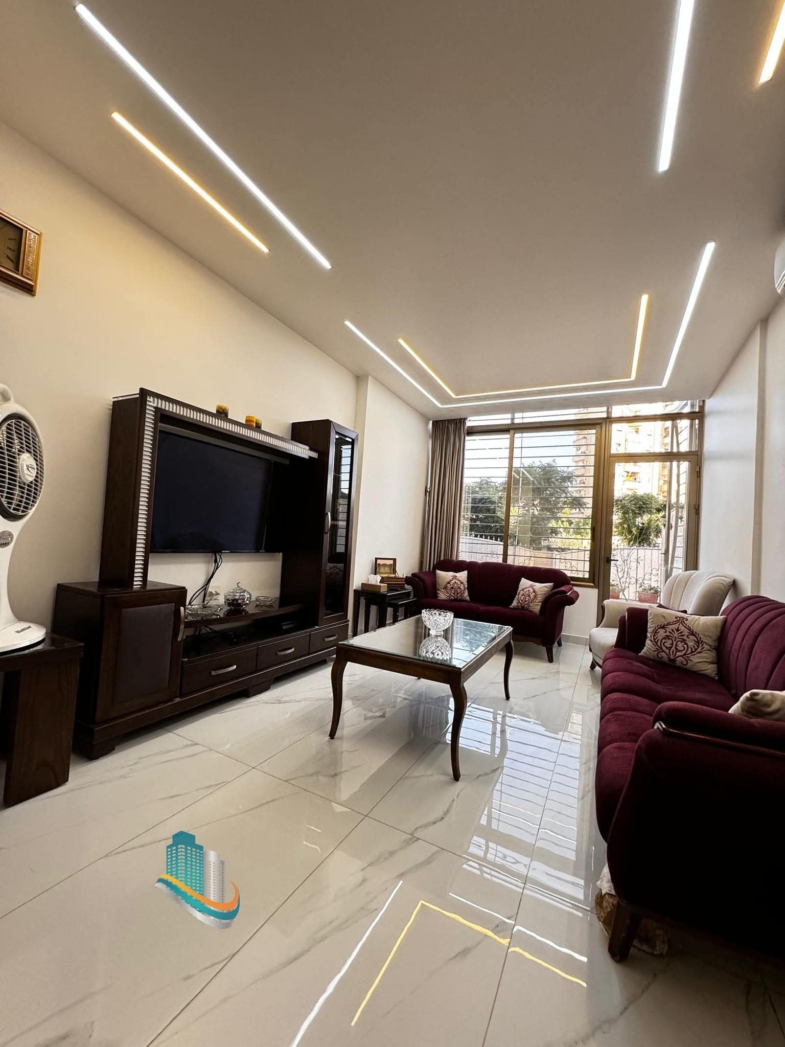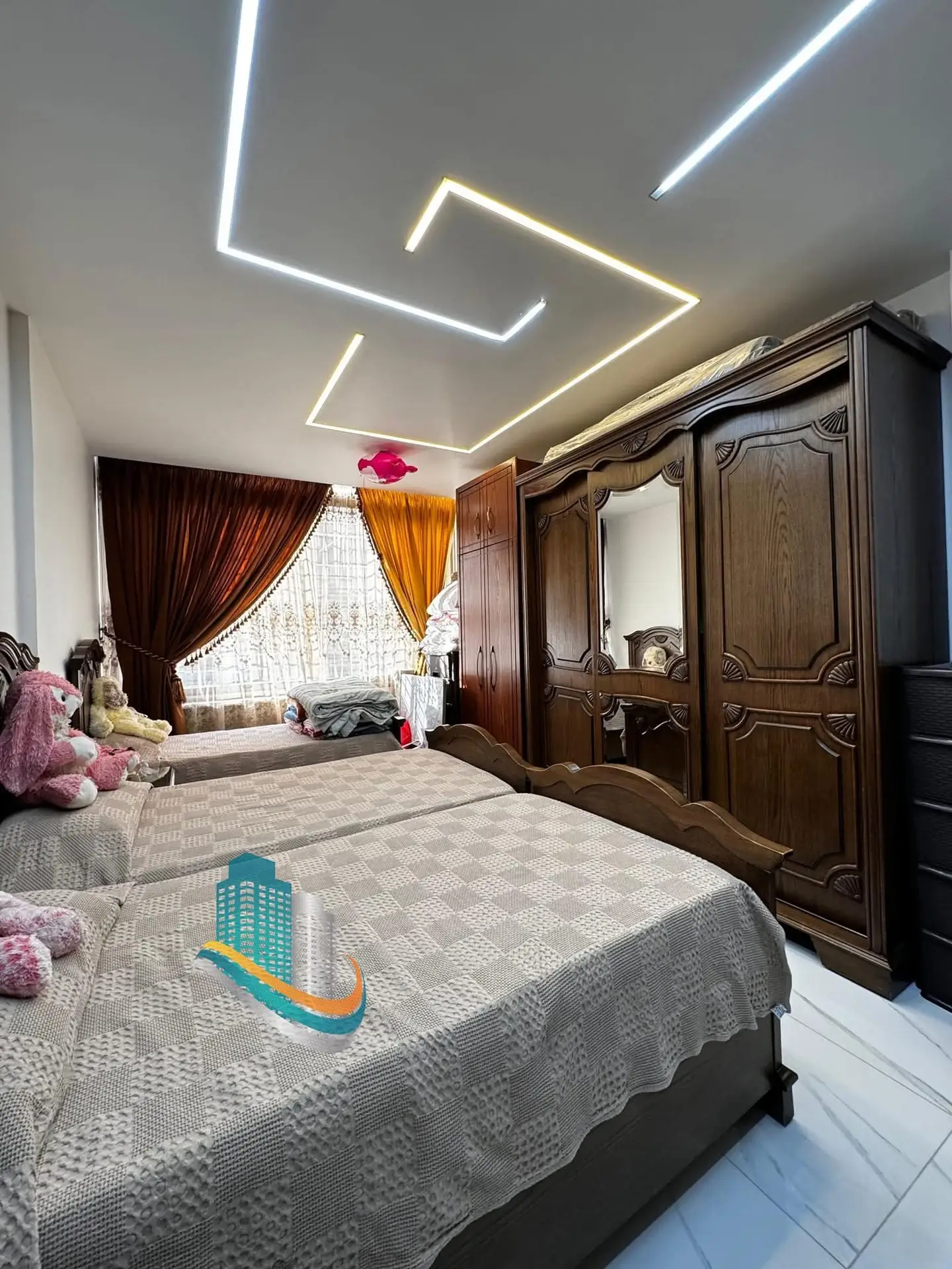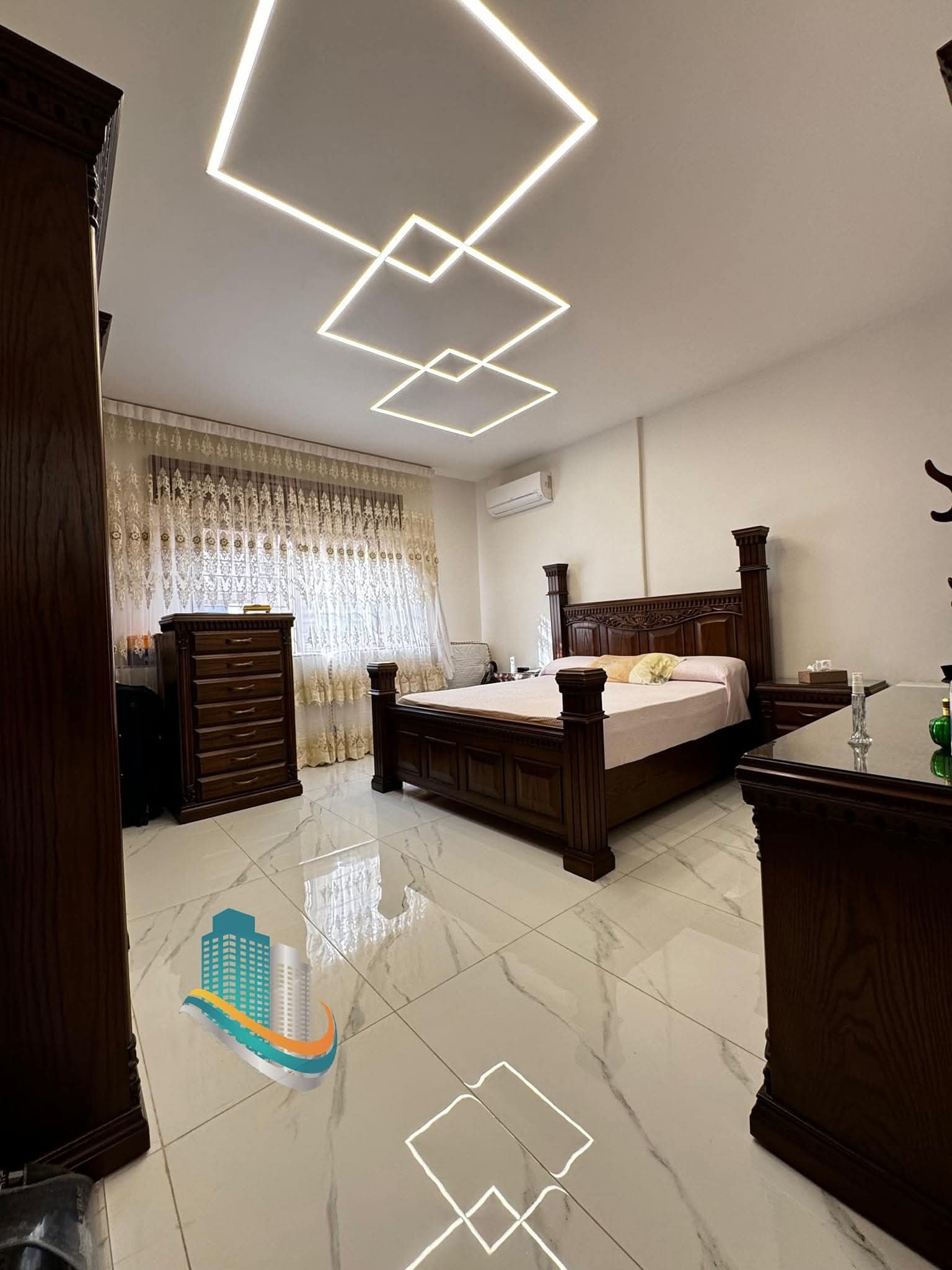 مساحة داخلية 135م عبارة عن غرفتين نوم حجم كبير وصالون حرف ل ومطبخ وحمامين واحد منون ماستر وحديقة بمساحة تقريبية 70م