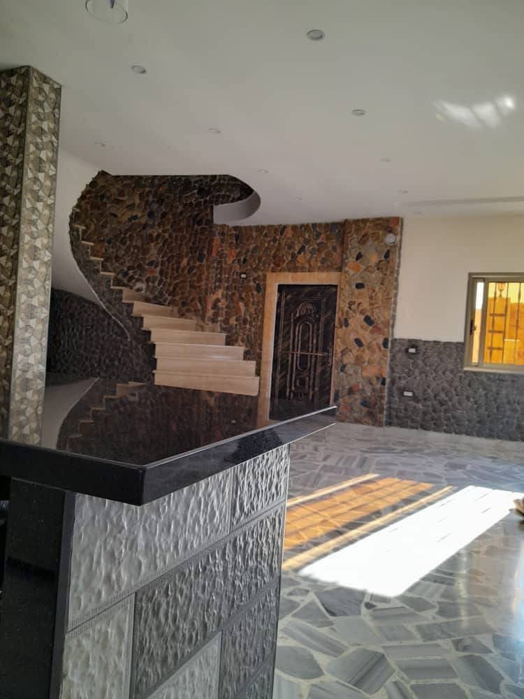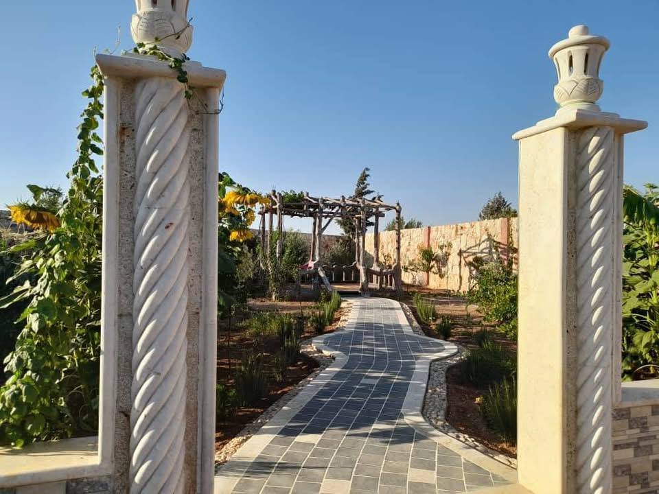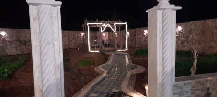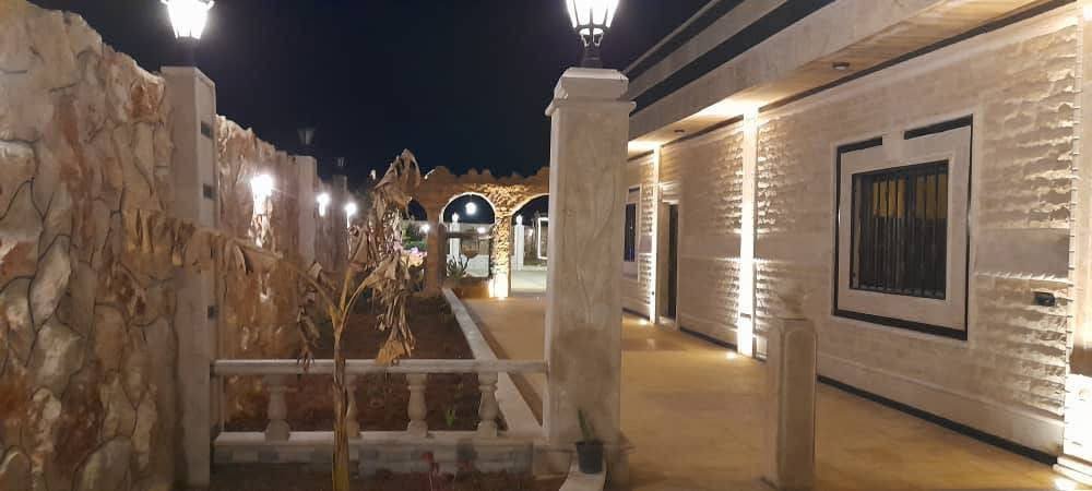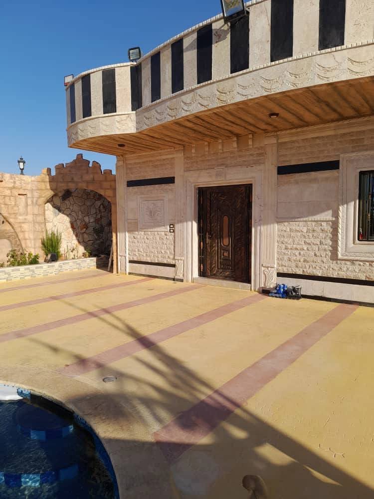 مساحة 1 دلم مساحت البناء 100 متر غرفتين وصالون كبير فيها مسبح مفلتر واصلها كهربا ومي