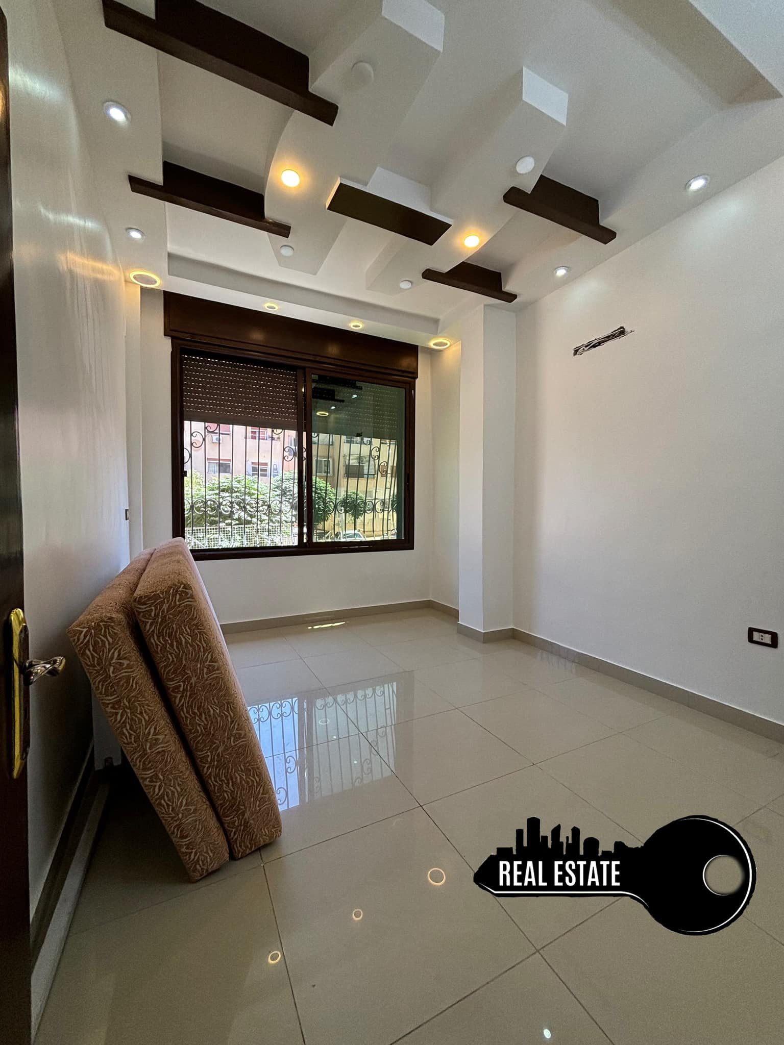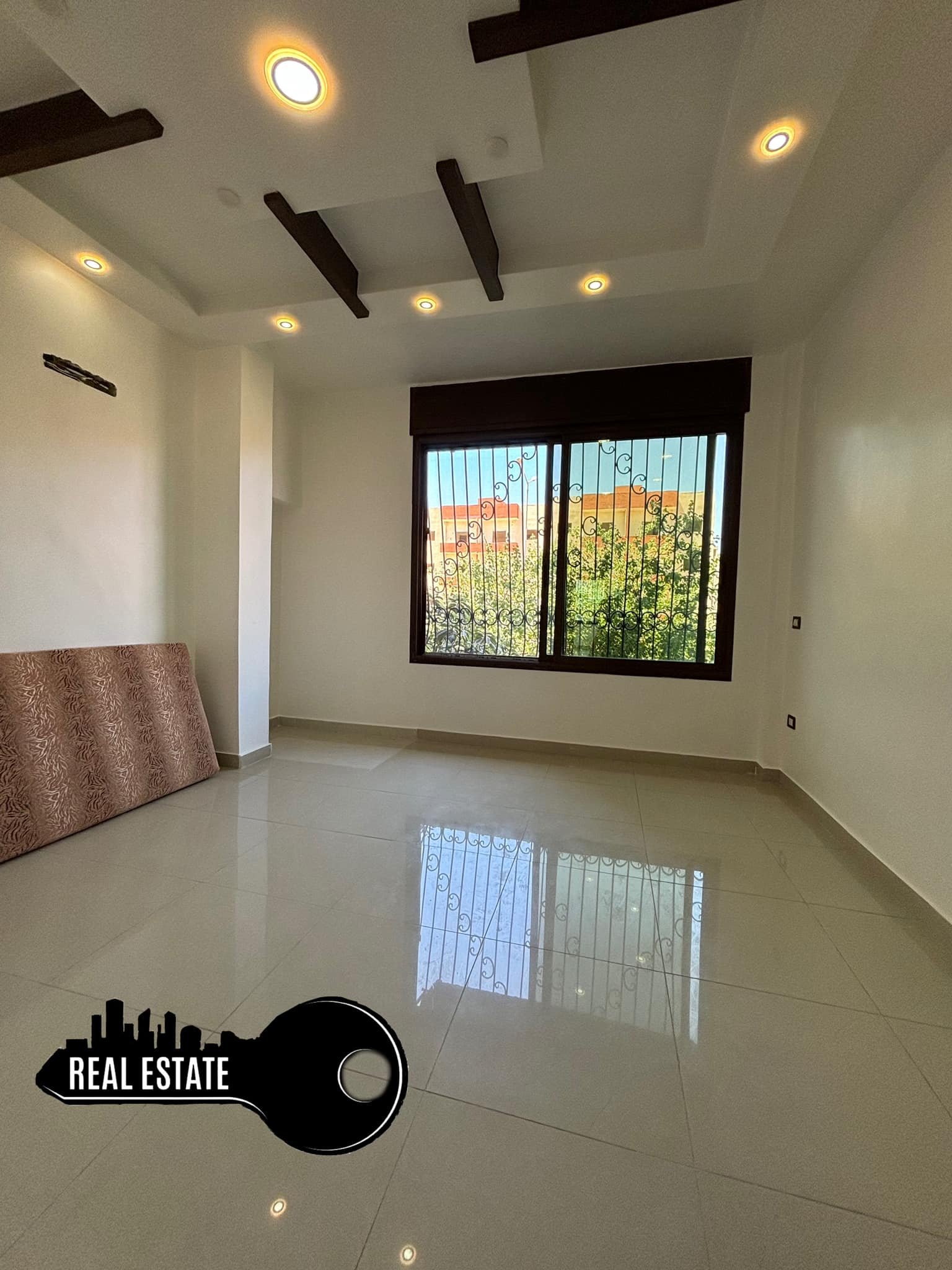 طابق اول طلوع 4 درجات مساحة 85متر فئة ألف عبارة عن غرفتين نوم كبار وصالون ومطبخ واسع وحمام وبلكون .. إكساء ممتاز مع شوفاج .. فراغ طابو .. سطح مشترك