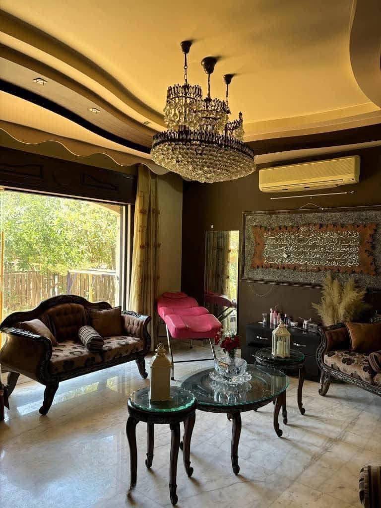 الطابق السفلي 120م غرفة نوم و صالون واسع ومطبخ وحمام2 وغرفة الشوفاج وغرفة الفلترة .