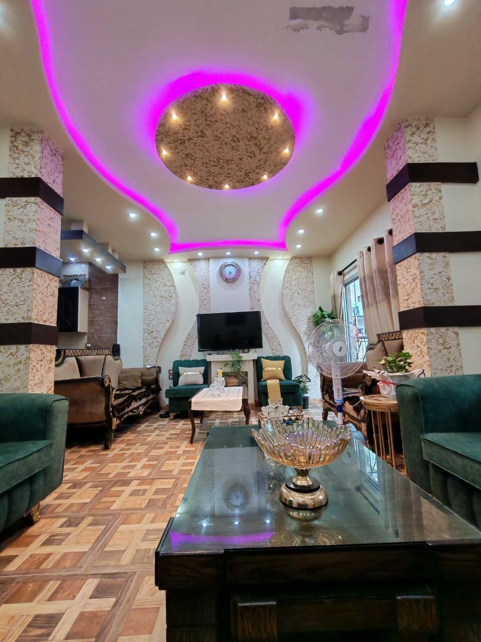 #التوزيع صالون دبل + مطبخ أميركي + ثلاث غرف نوم + حمامين + برندة.