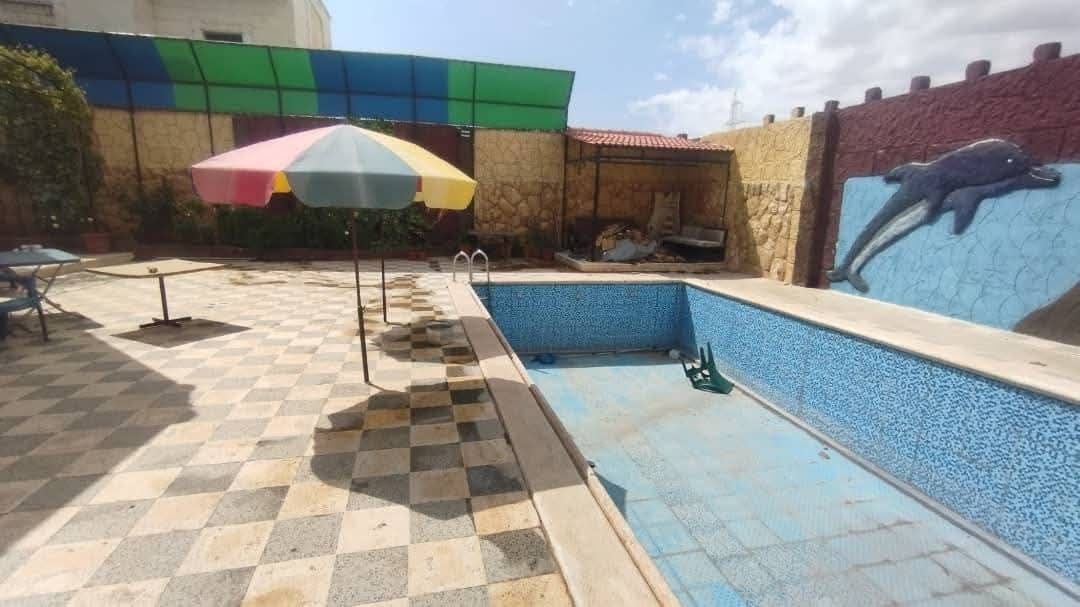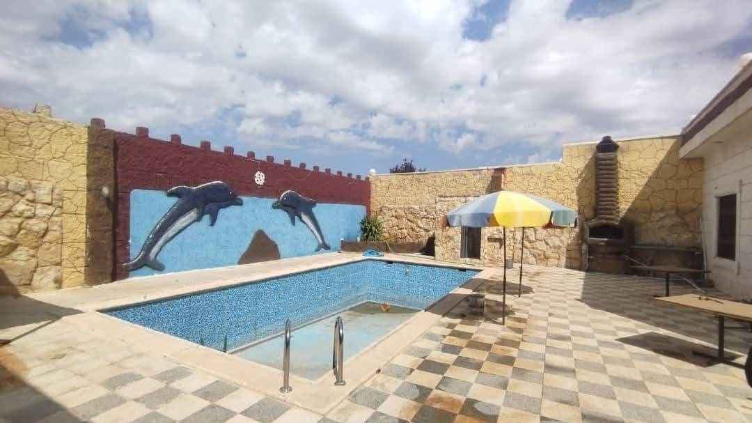 التوزيع ثلاث غرف ومطبخ ومنافع (طاقة كهربائية+فلتر مسبح+ جب ماء)
