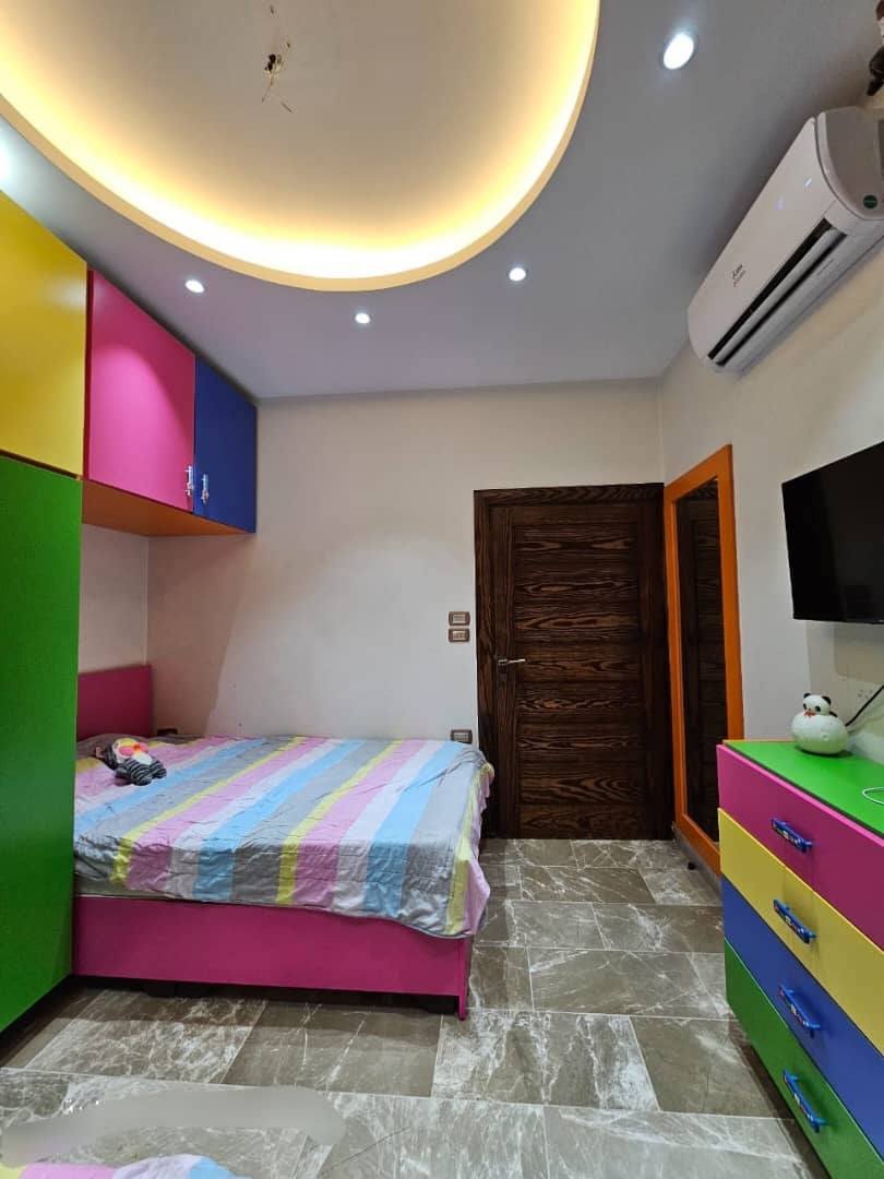 #يوجد إضافة للشقة بالطابق الارضي شقة صغيرة عبارة عن غرفة ومطبخ وحمام فاضي بدون فرش