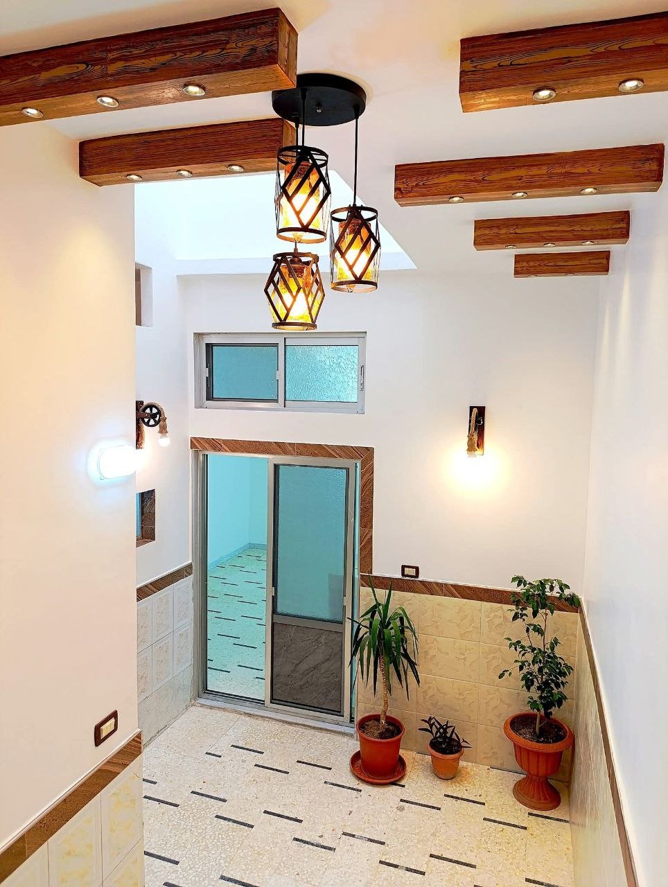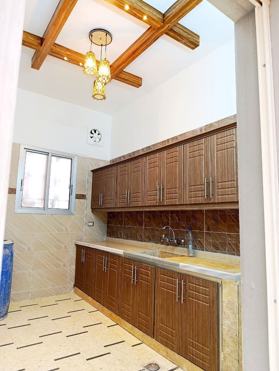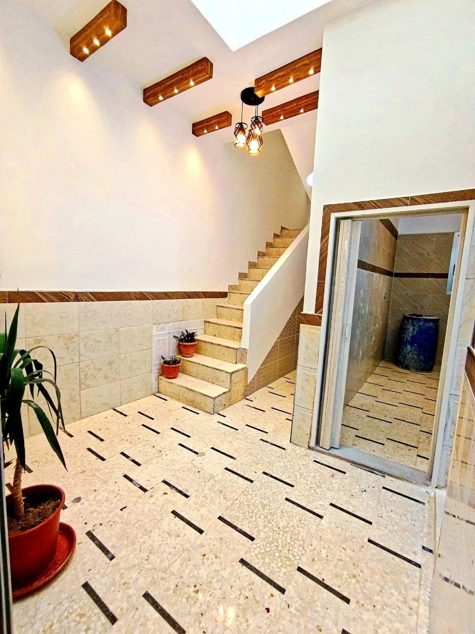 مألف من طابقين وسطح وهو عبارة شقة في الطابق ارضي غرفة وصالون مع ومنتفعات ( حمام ومطبخ)