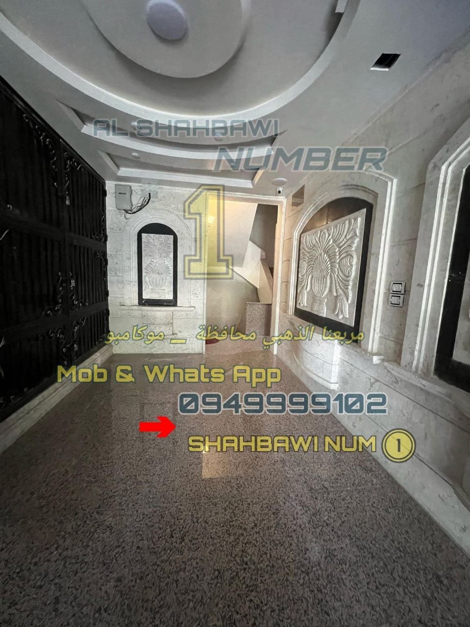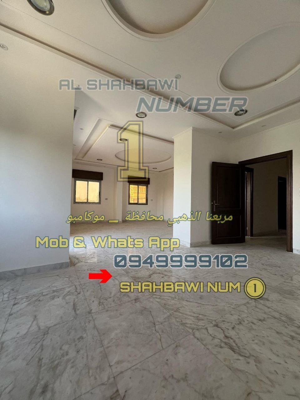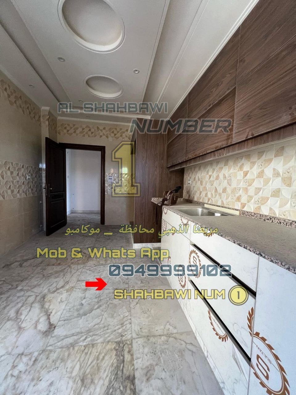 الإكساء الداخلي سوبر ديلوكس أرض رخام افيوني جبسن بورد إنارة حديثة مطبخ شبة جاهز المنيوم