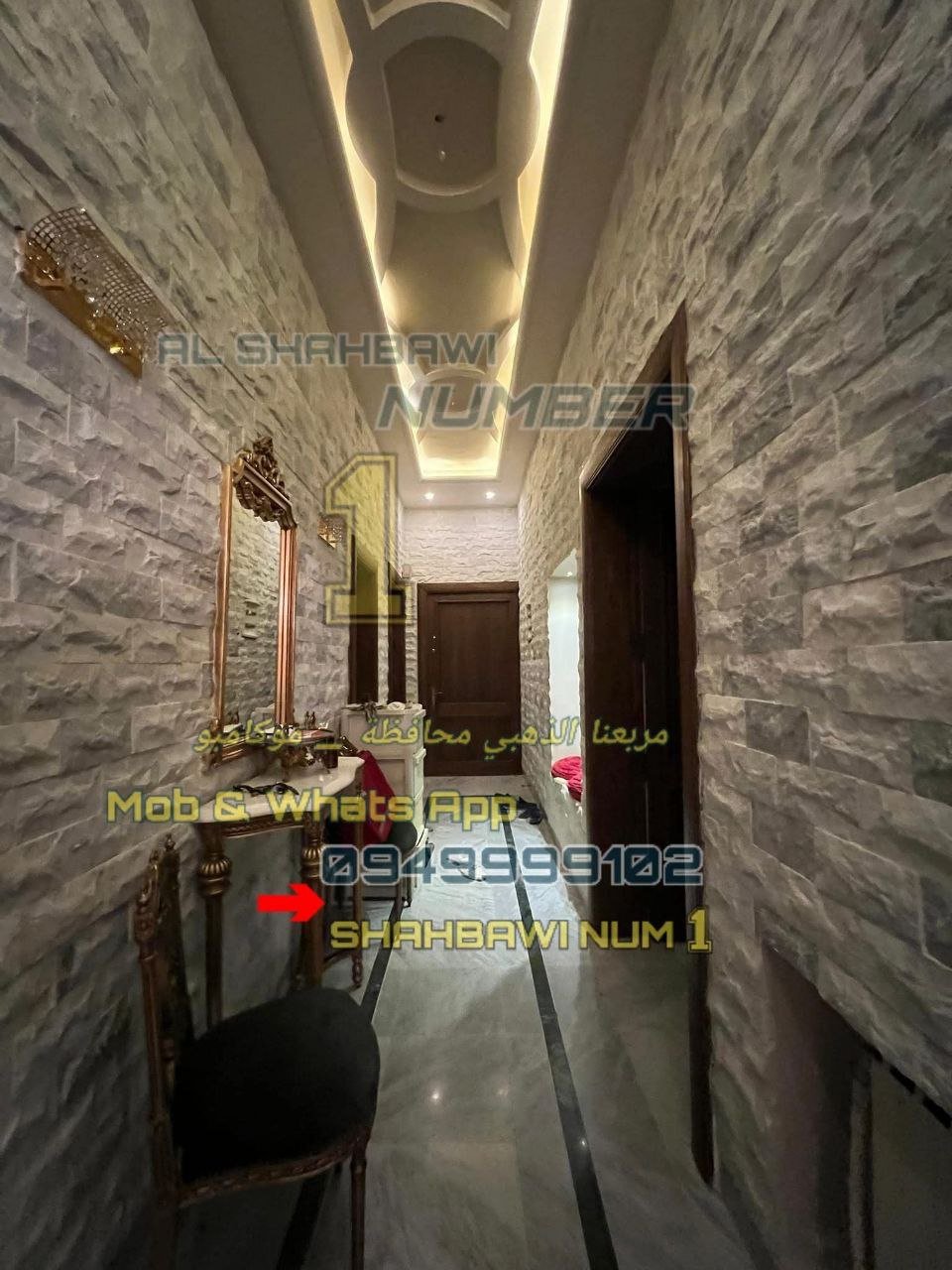 المنزل طابق ثاني نصف بلاطة كاملة مؤلف من ٦ غرف مع ٢ حمامات الاكساء الداخلي سوبر ديلوكس أرض رخام كاريرا أيطالي خشب سنديان أبجورات كهرباء حمامات جروهي بالكامل جبسن بورد إنارة حديثة مطبخ سنديان موسع مصعد كهربائي المنيوم دبل تيكنال كاتم للصوت والحرارة طاقة شمسية مع طاقة كهربائية ٢٤ بديلة المنزل أشراف رائع مفتوح على حديقة أمامية