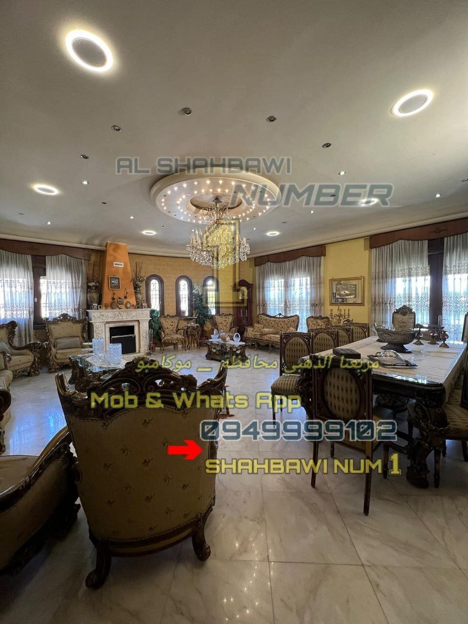 الإكساء الداخلي كلاسيكي ممتاز أرض رخام كاريرا إيطالي خشب كندي شيمنية حطب رخام شوفاج شغال طاقة شمسية مع طاقة كهربائية 24 مصعد 24