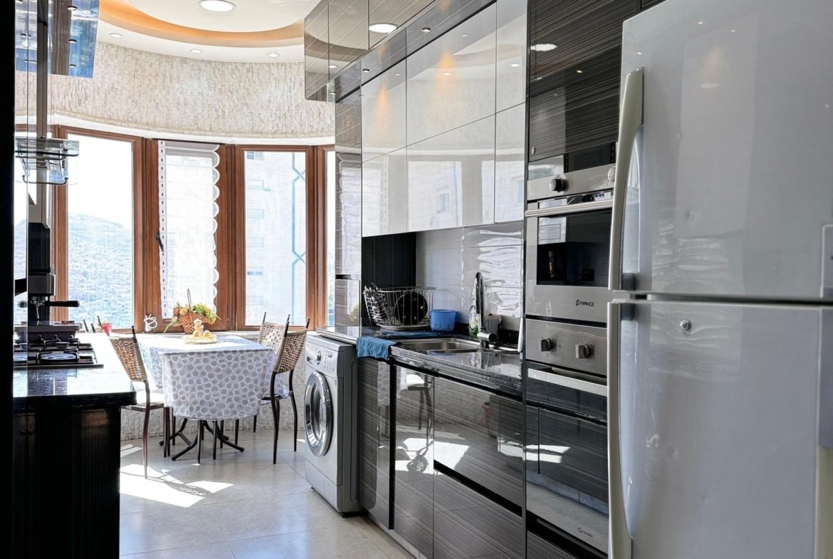 مساحة 200م .. بناء حجر مميز مصعد كراج سيارات تحت الأرض خاص .. عبارة عن 3غرف نوم .. صالون حرف L مقطعين .. غرفة سفرة .. مطبخ .. حمام2 .. موزع .. بلكون2 .. انتريه دخول .. إكساء سوبر ديلوكس