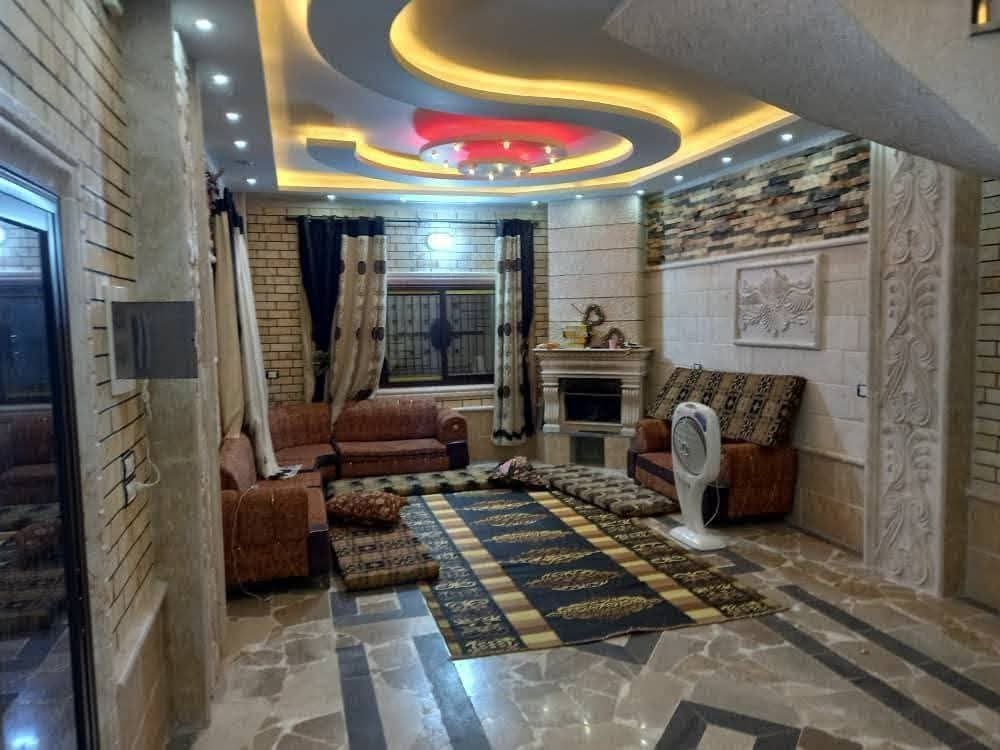 توزيع البناء طابق الأول: صالون ومطبخ وحمام / طابق الثاني : غرفتين نوم وحمامين كل غرفة حمام