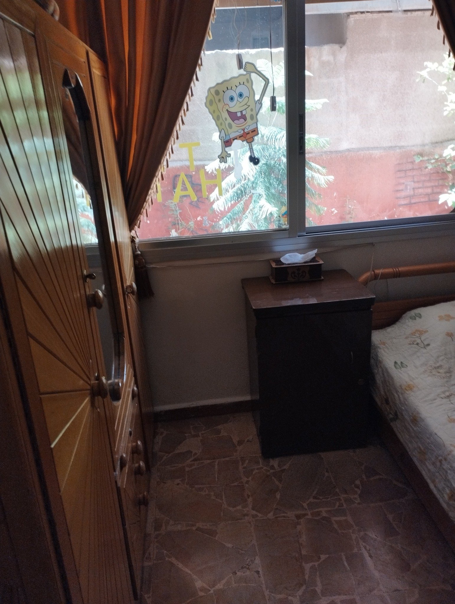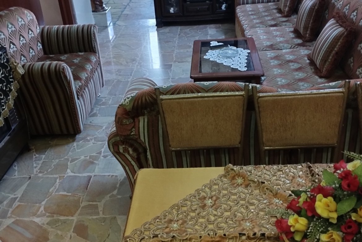 الوصف: شقه 3غرف وصالون ومنافعها وغرفه ومنافع منفصله تصلح محل تجاري لها باب من الشارع مباشرة مع حديقه وحصه بالسطح والقبو