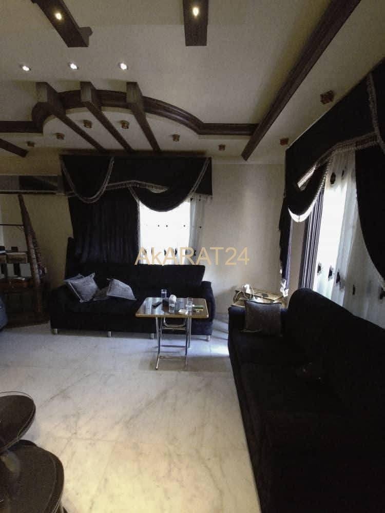 التوزيع : خمسة غرف وصوفا ومطبخ ومنافع وبرندات + حصة بالاسطوح + حصة بالقبو