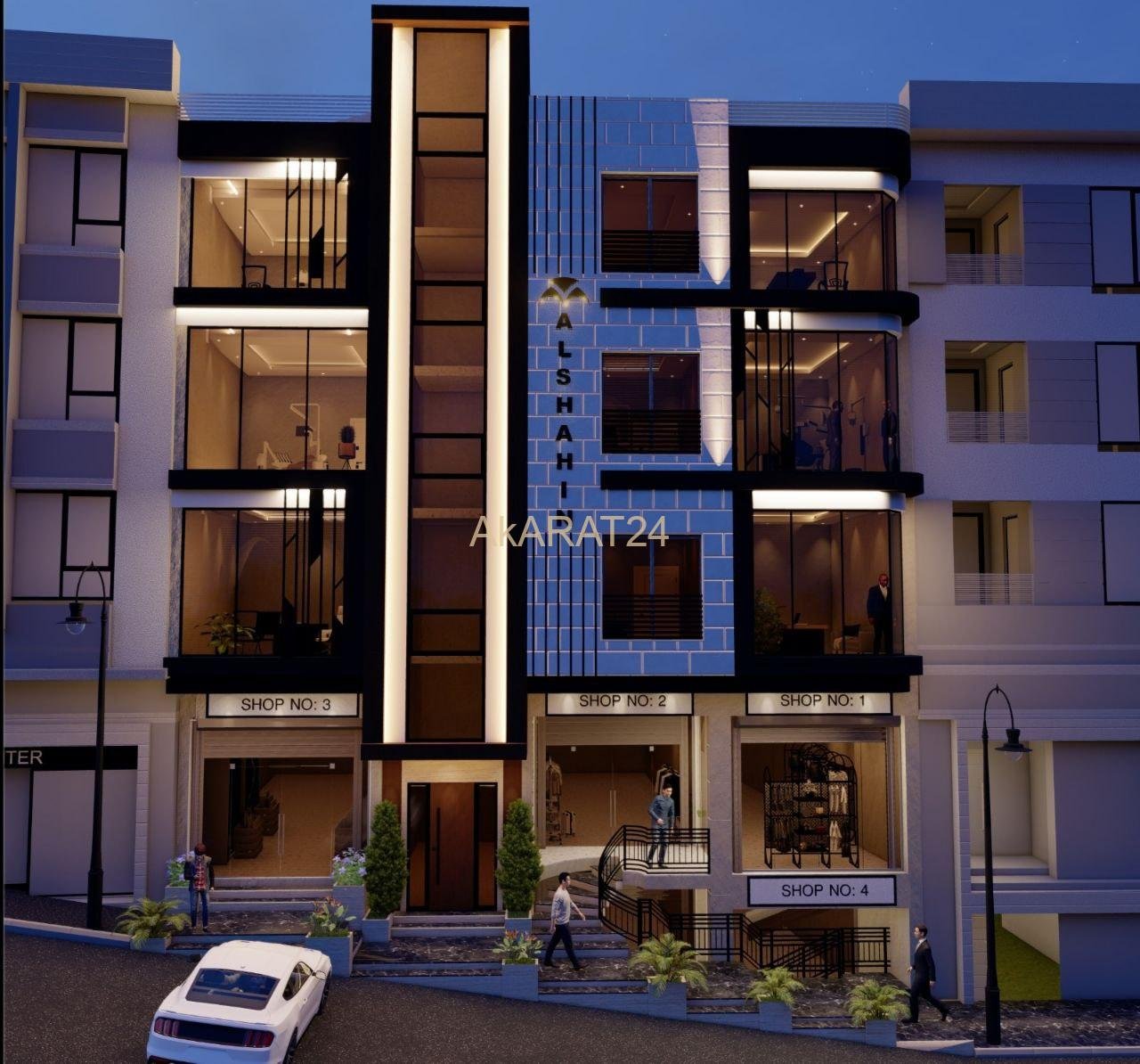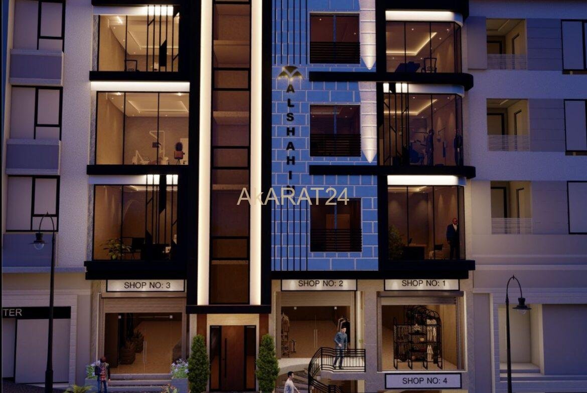 الطابق ثلاث طوابق فنية يتألف كل طابق من 4 مكاتب على العظم داخلياً