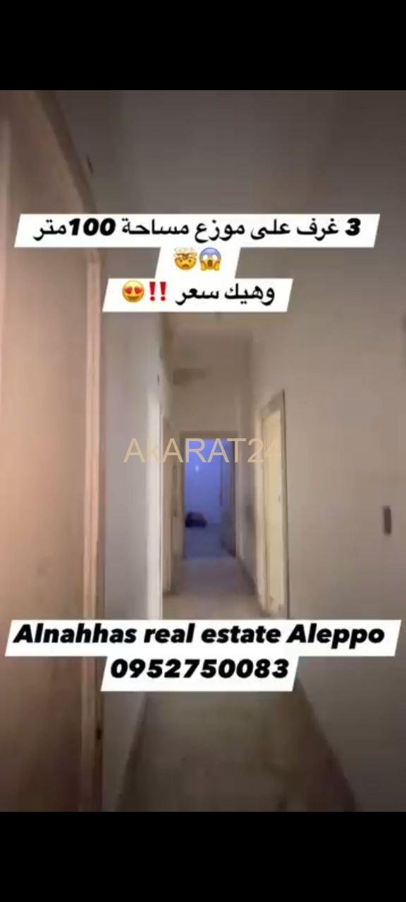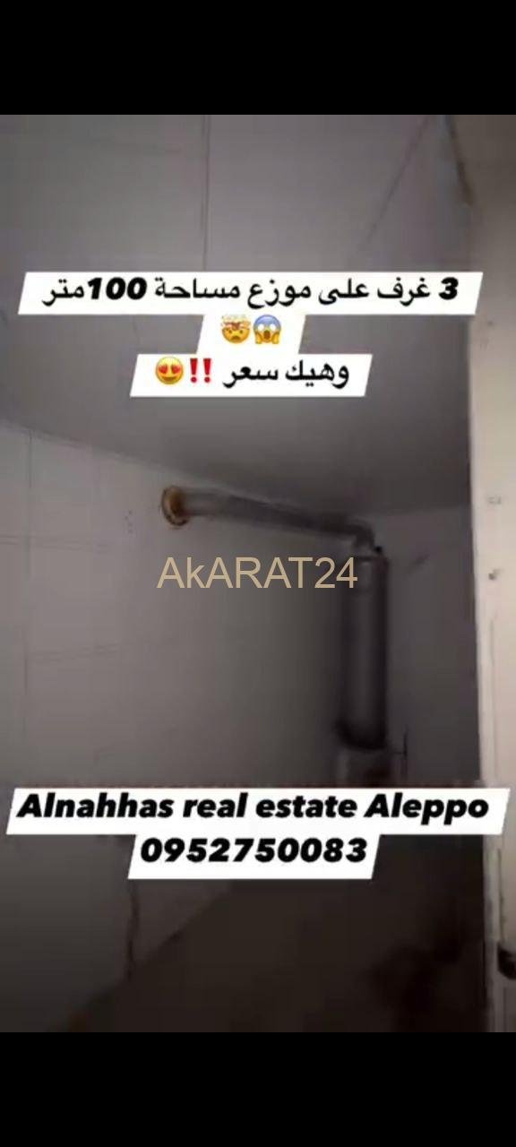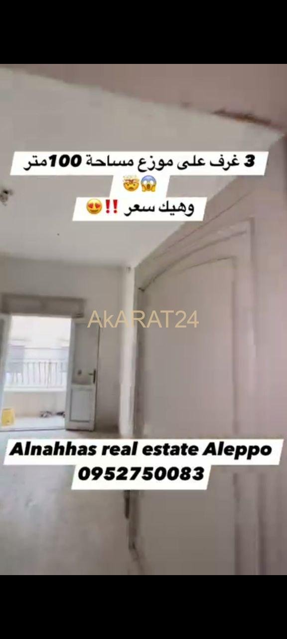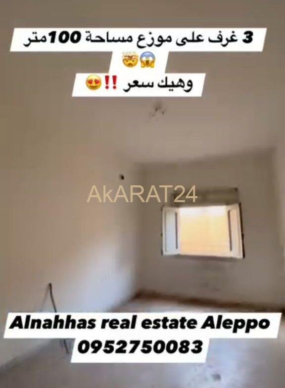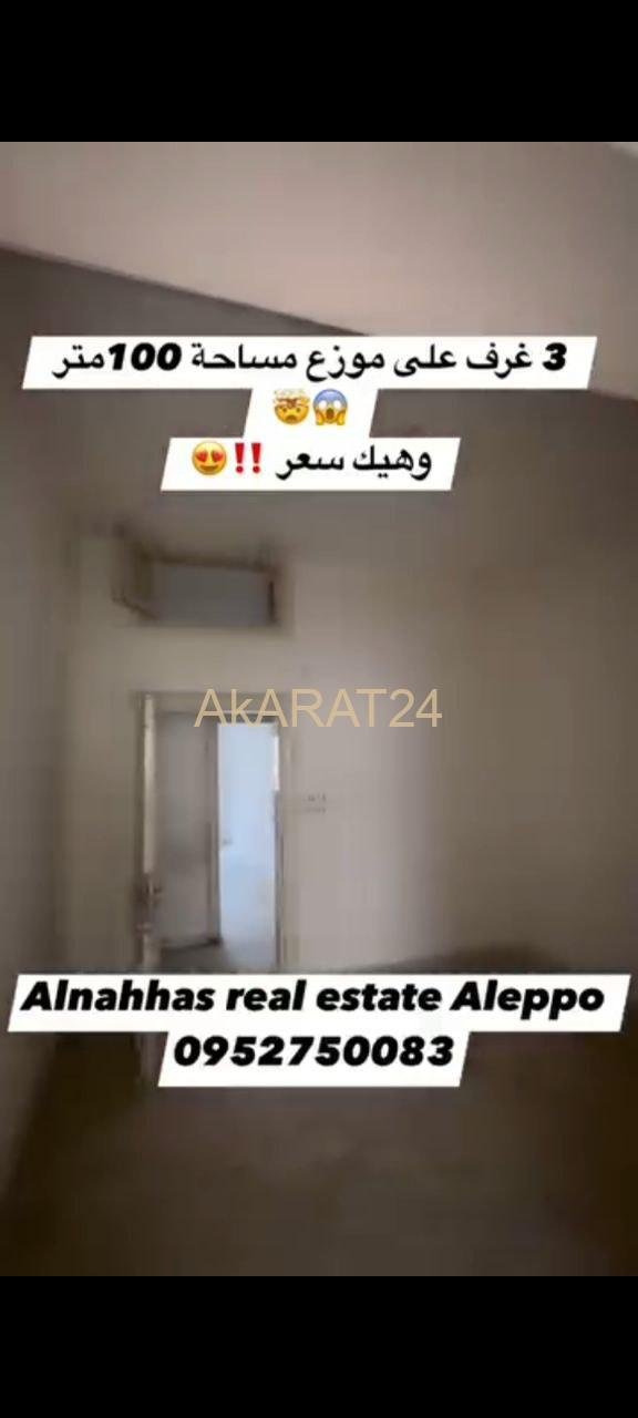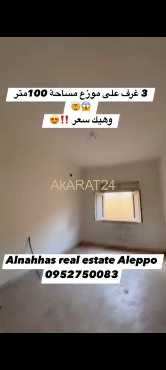 مساحة 100 متر طابق تالت 3 غرف على موزع