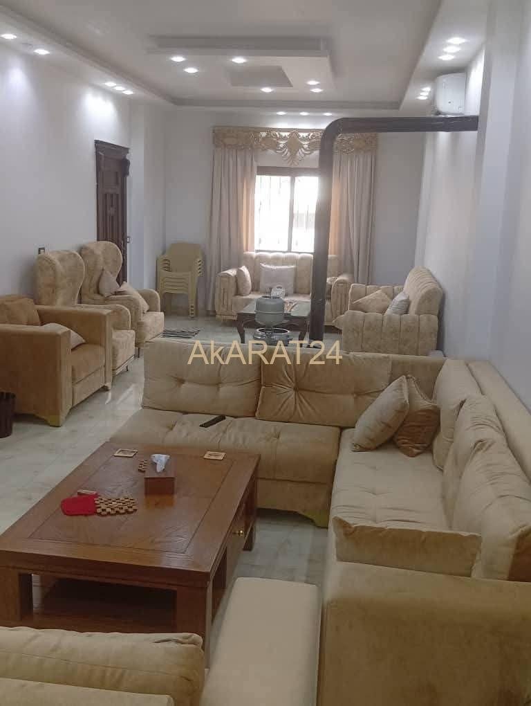 للاجار شقة مفروشة طابق اول فني غرفتين نوم وصالون ومنافع اكساء وفرش ممتاز مع طاقة كهرو ضوئية